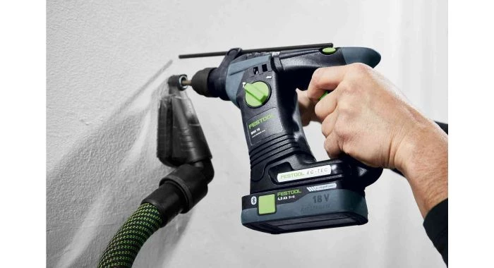 Avec le systĂšme d’amortissement des vibrations, la forme en C ergonomique et un poids de seulement 2,5 kg (avec la batterie 4,0 Ah Li-HighPower Compact), le perforateur sans fil BHC 18 combine puissance et lĂ©gĂšretĂ© â pour un perçage intense mais sans fatigue, mĂȘme dans les matĂ©riaux les plus durs. Le moteur EC-TEC sans charbons et sans maintenance le rend extrĂȘmement robuste et puissant : avec une Ă©nergie de frappe exceptionnelle, le BHC 18 perce avec force le bĂ©ton, la pierre et les piĂšces de maçonnerie. Le systĂšme d’amortissement des vibrations intĂ©grĂ© empĂȘche l’Ă©nergie de frappe d’ĂȘtre transfĂ©rĂ©e dans les poignets. La batterie BluetoothÂź enclenche automatiquement l’aspirateur CLEANTEC raccordĂ© Ă la mise en marche de l’outil pour rĂ©duire au minimum le dĂ©gagement de poussiĂšres et permettre une utilisation confortable de la buse d’aspiration.