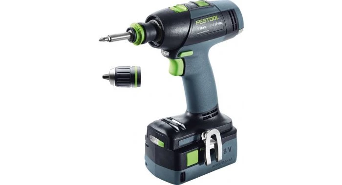 Pour une entiĂšre flexibilitĂ© lors du perçage et du vissage : le rĂ©glage du couple entiĂšrement Ă©lectronique, le systĂšme de changement rapide CENTROTEC, le renvoi d’angle, le module excentrique et la butĂ©e de profondeur conviennent Ă toutes les applications de perçage et de vissage. GrĂące Ă la combinaison d’une batterie Li-HighPower et d’un moteur EC-TEC sans charbons, et donc sans maintenance, la perceuse-visseuse sans fil T 18+3 combine lĂ©gĂšretĂ©, longĂ©vitĂ© et endurance. Et pour plus de sĂ©rĂ©nitĂ© au quotidien, les prestations Festool Service offrent une couverture complĂšte pour la visseuse sans fil et la batterie. Disponible en version Ă forme T ou, selon les prĂ©fĂ©rences personnelles, en version C 18 ou Ă forme en C unique.