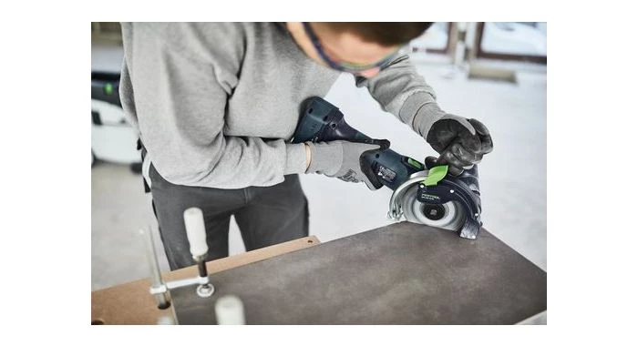 - Le capot d’aspiration permet un travail plus sain : plus de 95 % de la poussière est directement captée vers l’aspirateur, idéal pour le tronçonnage de matériaux minéraux en intérieur