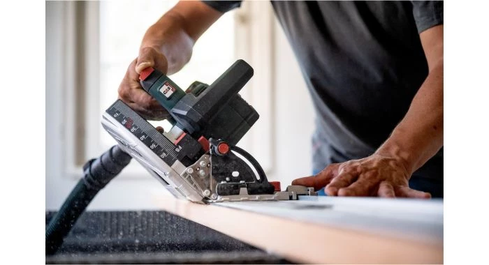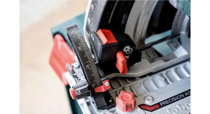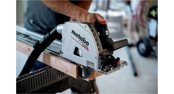 Fixation sans jeu et rĂ©glable sur les rails de guidage de Metabo et d’autres fabricants pour des rĂ©sultats de coupe prĂ©cis